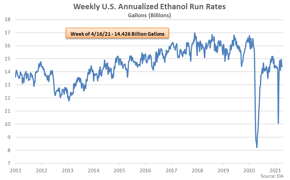 Apr 16th Ethanol Run Rates Finished Unchanged From the Previous Week